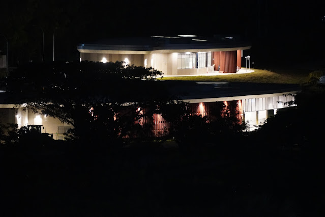 | 9 March 2024 - Founders' Memorial station buildings seen in the evening. About 95% of the Gardens by the Bay - Bay East has since been hoarded up for the development of the Founders' Memorial. |